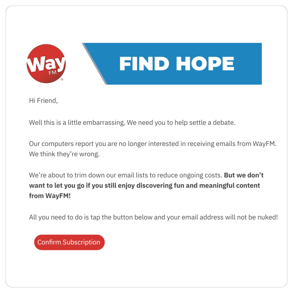 By the end of the campaign, we’d cleared out over 8,000 inactive emails—and kept the 2,000 people who still cared. Our list is leaner now, but stronger. Engagement is up. Deliverability is better. And we’re not paying for ghosts.
